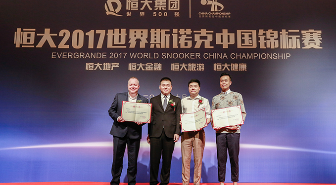 世界斯諾克球星丁俊暉、希金斯、傅家俊出任“恒大2017世界斯諾克中錦賽形象大使”
