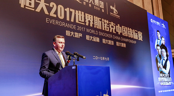 恒大2017世界斯諾克中錦賽舉行啟動儀式 世界名將丁俊暉希金斯等任形象大使