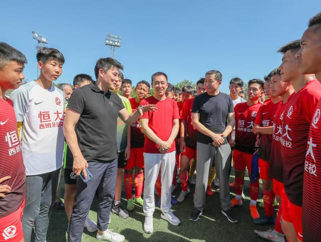 許家印周金輝等觀看恒大西班牙分校訓(xùn)練并勉勵(lì)小球員早日成才