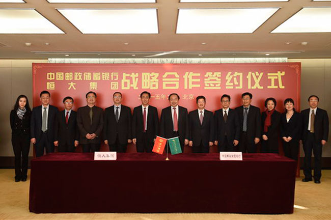 中國郵儲銀行與恒大集團在中國郵儲銀行總部簽署戰(zhàn)略合作協(xié)議