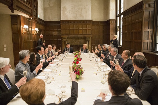 會談結(jié)束后,Lawrence S.Bacow校長全程陪同參觀了哈佛校園和美國第六大藝術(shù)館哈佛藝術(shù)博物館,并于當(dāng)晚特意在博物館隆重宴請了許家印一行。恒大集團(tuán)董事局副主席、總裁夏海鈞,副總裁陳敏、史俊平,以及哈佛大學(xué)常務(wù)副校長Alan M. Garber,哈佛大學(xué)校長助理Peggy Newel、Mary Beth Pearlberg,哈佛醫(yī)學(xué)院院長George Q.Daley,設(shè)計學(xué)院院長Mohsen Mostafavi,基礎(chǔ)科學(xué)與研究學(xué)院院長David E.Golan,恒大免疫疾病中心聯(lián)席院長Vijay Kuchroo、Arlene Sharpe,綠色建筑與城市中心主任Ali Malkawi等14位哈佛大學(xué)領(lǐng)導(dǎo)班子和相關(guān)院系負(fù)責(zé)人出席活動。